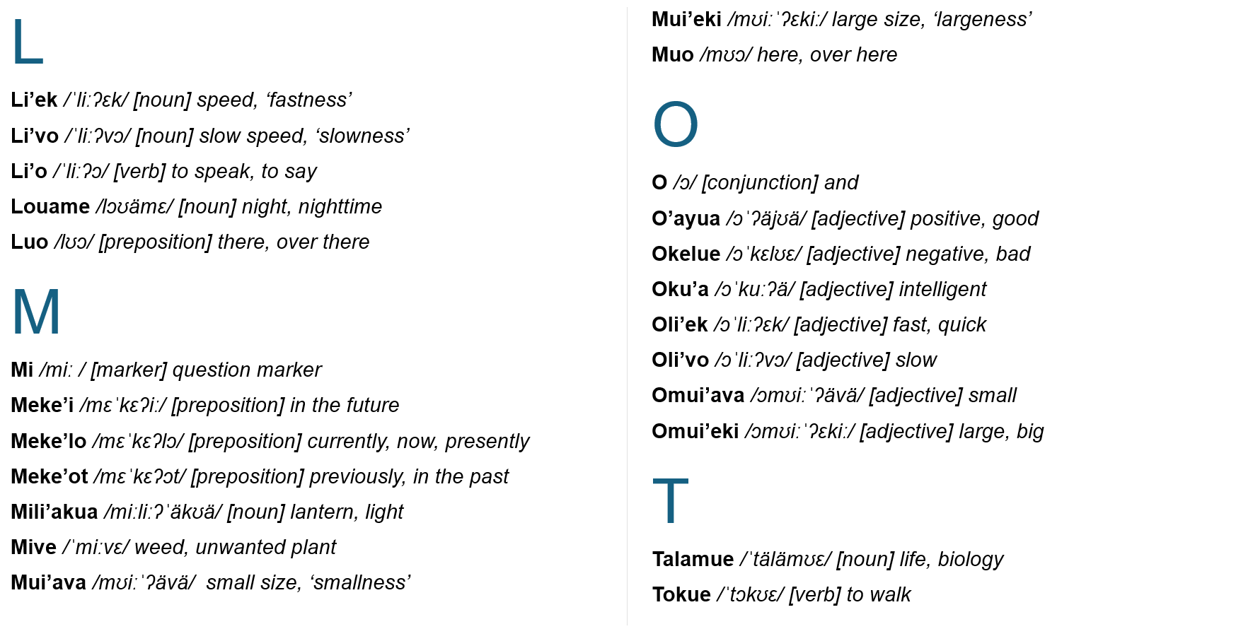 A free doc for conlang nerds showing off my new conlang, Omuoye, with IPA and alphabetised vocabulary. I've created this language for a sci fi worldbuilding project. Hope you enjoy!